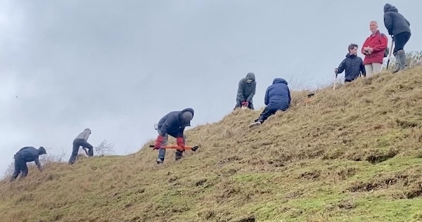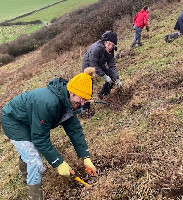 The work has been slow and deliberate. This is not clearance for its own sake, but ecological restoration. And it is hard work wielding heavy tools on steep slopes in all weathers on an exposed hillside. Yet the volunteers – spanning seven decades from youngest to oldest – have turned out throughout the winter, enjoying fresh air, good company and a real sense of achievement…