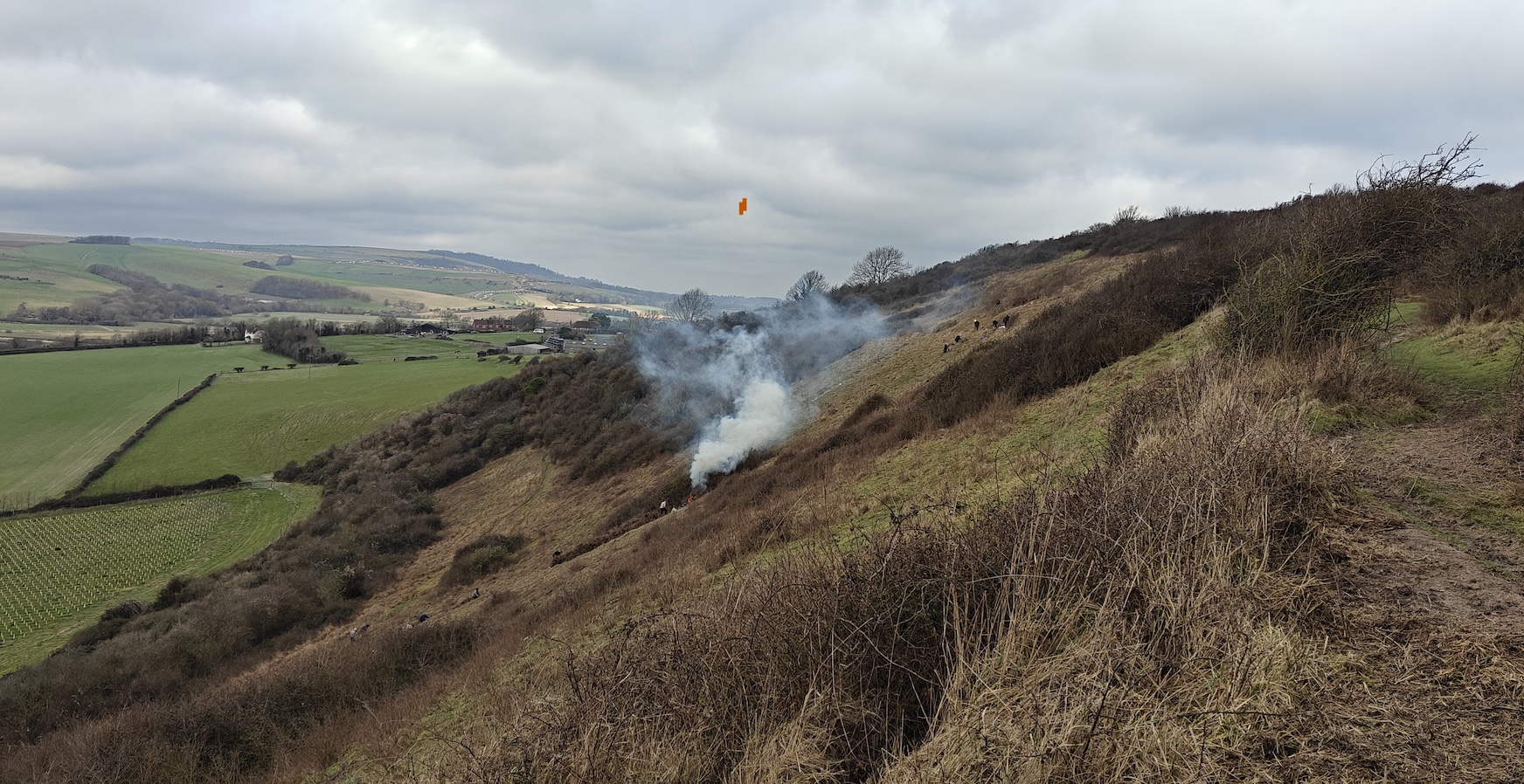 A series of volunteer workdays have cleared the heart of the slope top to bottom. Work continues steadily north and south, reopening chalk grassland that was being overwhelmed. What was once a tangle is becoming, again, open downland. The results are visible from afar – even from the bypass – and in time will show up clearly in satellite imagery: a small but definite mark of local action on the landscape.